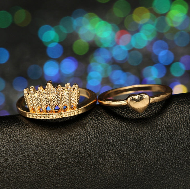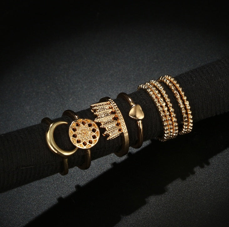 9PCS Midi Rings Set For Women Boho Detailed Metal Moon Feather Crown Dreamcatcher Knuckle Gold Color Ring Fashion Jewelry KB423